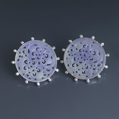 Bi Color Lavender and Green Jadeite Disc Earrings