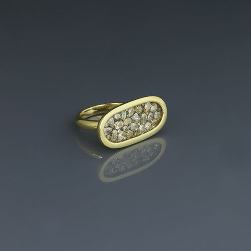 Natural Fancy Colored Diamond Pave Oval Ring