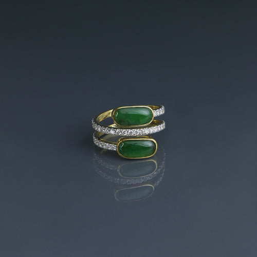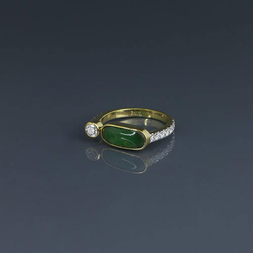 Offset Jade Cabochon and Diamond Stack Ring