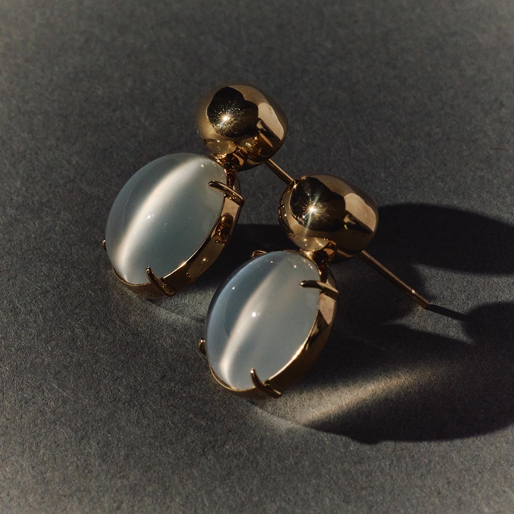 Cat's Eye Moonstone Cabochon Dome Earrings