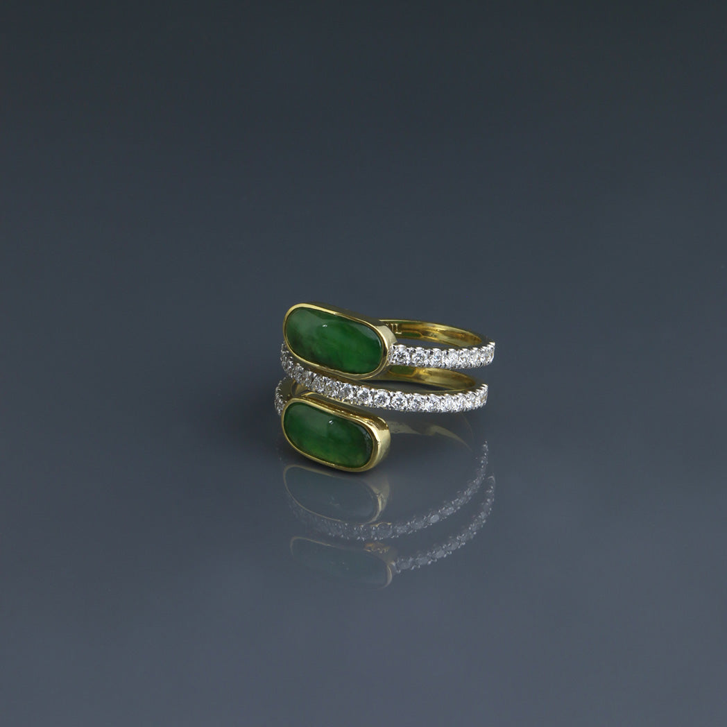• Load image into Gallery viewer, Jadeite Cabochon Diamond Spiral Ring