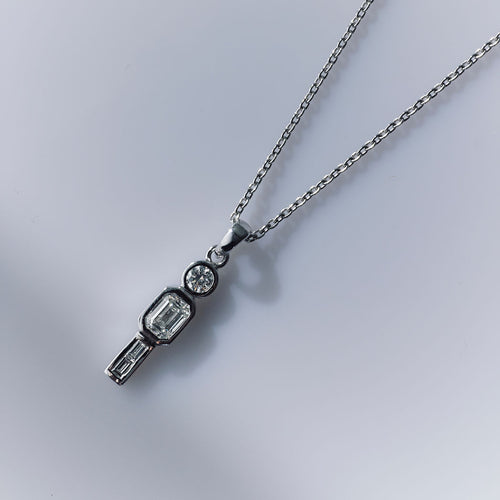 Asscher Cut Emerald and Marquise Diamond Toi et Moi Pendant